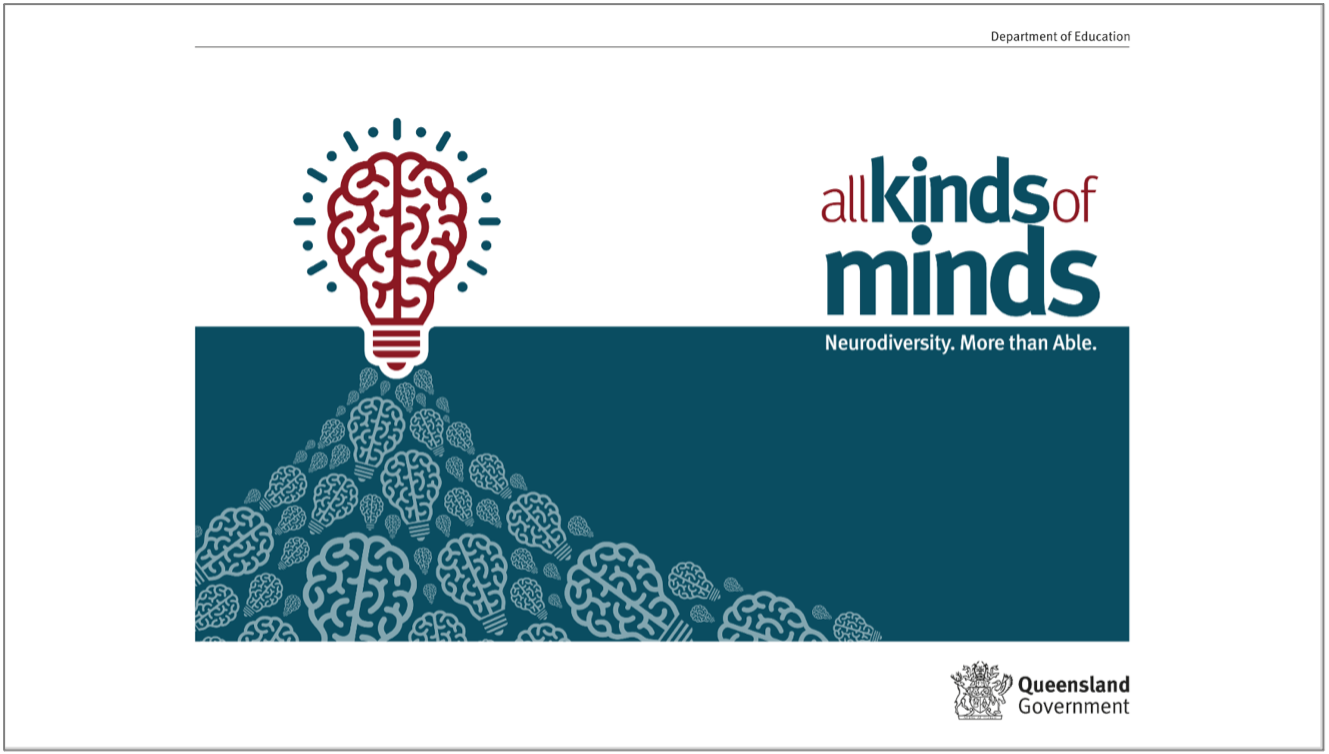 The All Kinds of Minds Neurodiversity Pilot centres on the workforce inclusion of neurodiversity within the Queensland Department of Education, Australia. Neurodiversity refers to the natural variation in human wiring, including autism, ADHD, dyslexia etc. In a world-first, our service focuses on developing alternative recruitment and support pathways to embrace neurodiverse talent within non-technical departmental roles and include multiple stakeholder voices in the design and implementation of service.