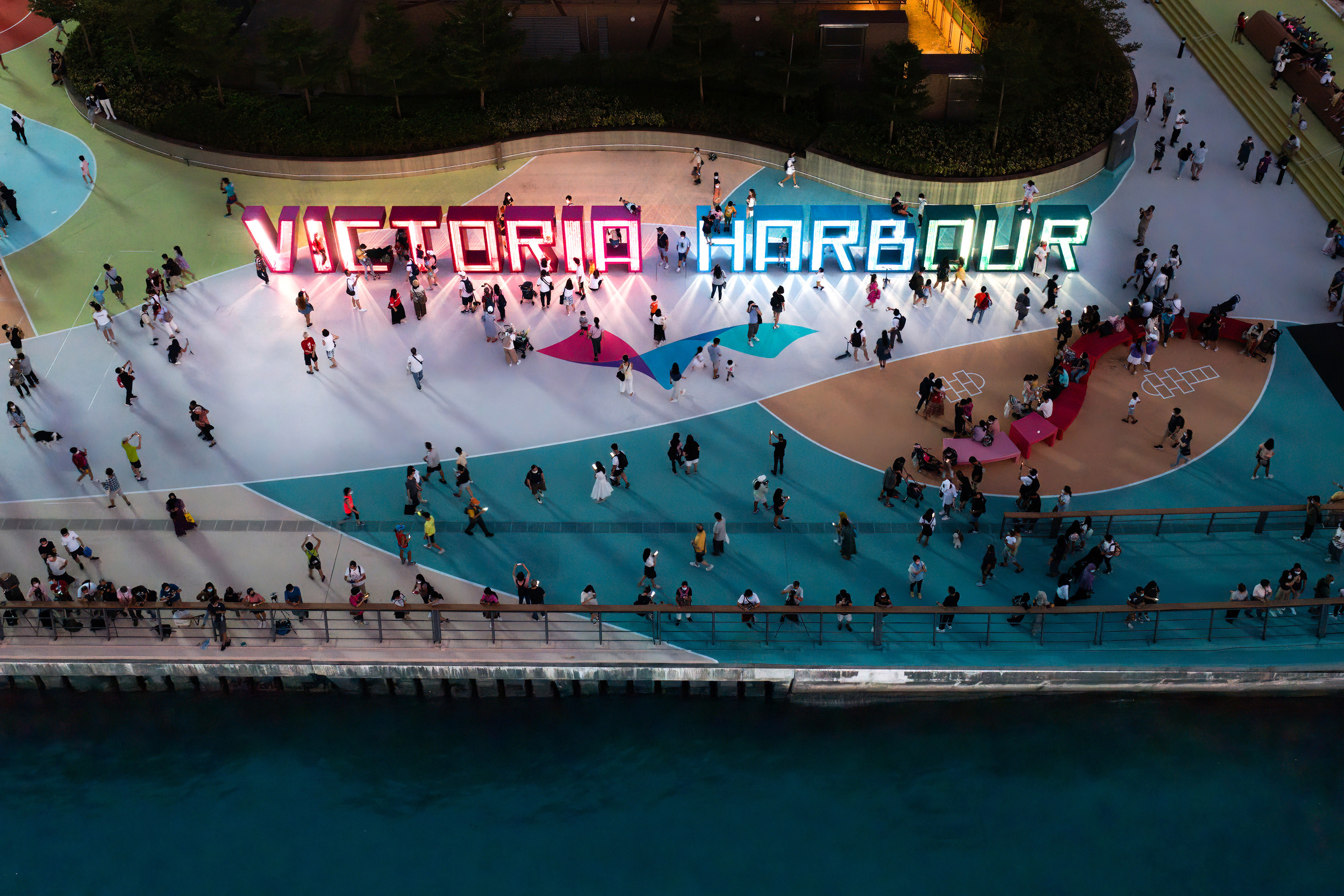 The Word Art installation creates an eye-catching landmark signage for Victoria Harbour that invites the visitors to openly interpret and interact with the hollow mesh letters to become a part of the art work, and to increase their sense of belonging.