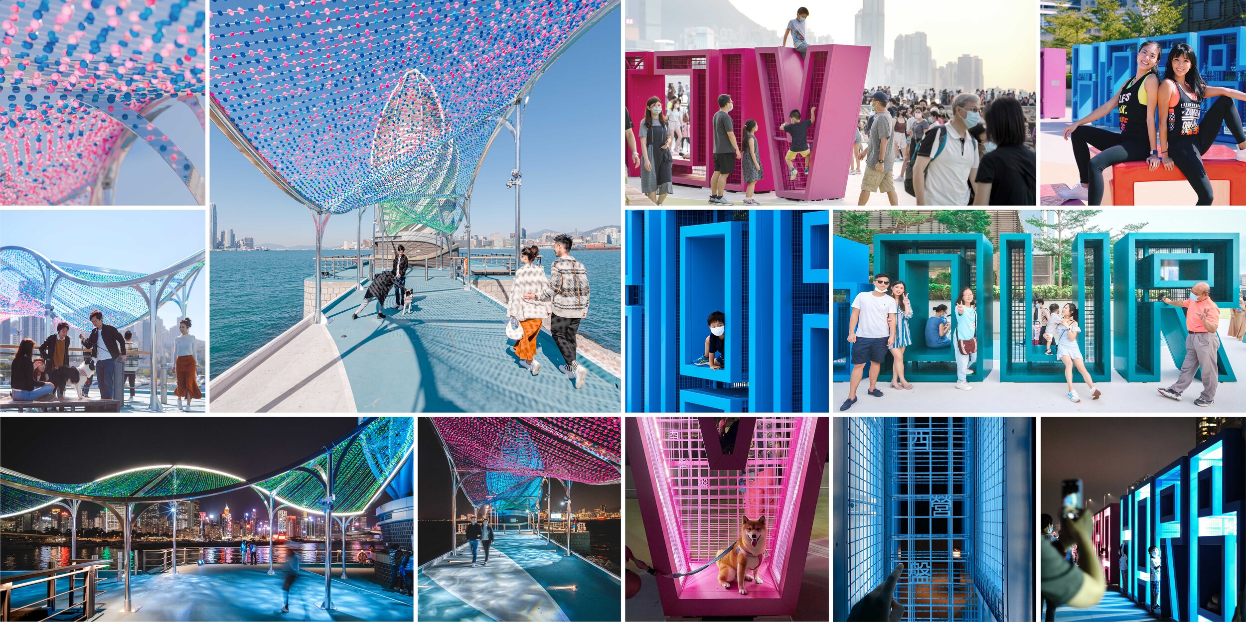 One of the biggest challenges as designers, was to first understand the social situation of Hong Kong, and how the densely populated city doesn’t allow much room for the public to breathe. We then had to try and understand what would interest the people of Hong Kong to want to go visit the art installations. What we discovered, was that people want the freedom to be able to choose what they can do, and explore by themselves how to interact creatively with public art. We therefore created hollowed letters design that provided the framework for the users to interact freely through, sitting, leaning, climbing, doing yoga, posing for photos, or bringing their pets to the installation. The success of this can be demonstrated by the overwhelming popularity and the vast amounts of visitors on a daily basis.