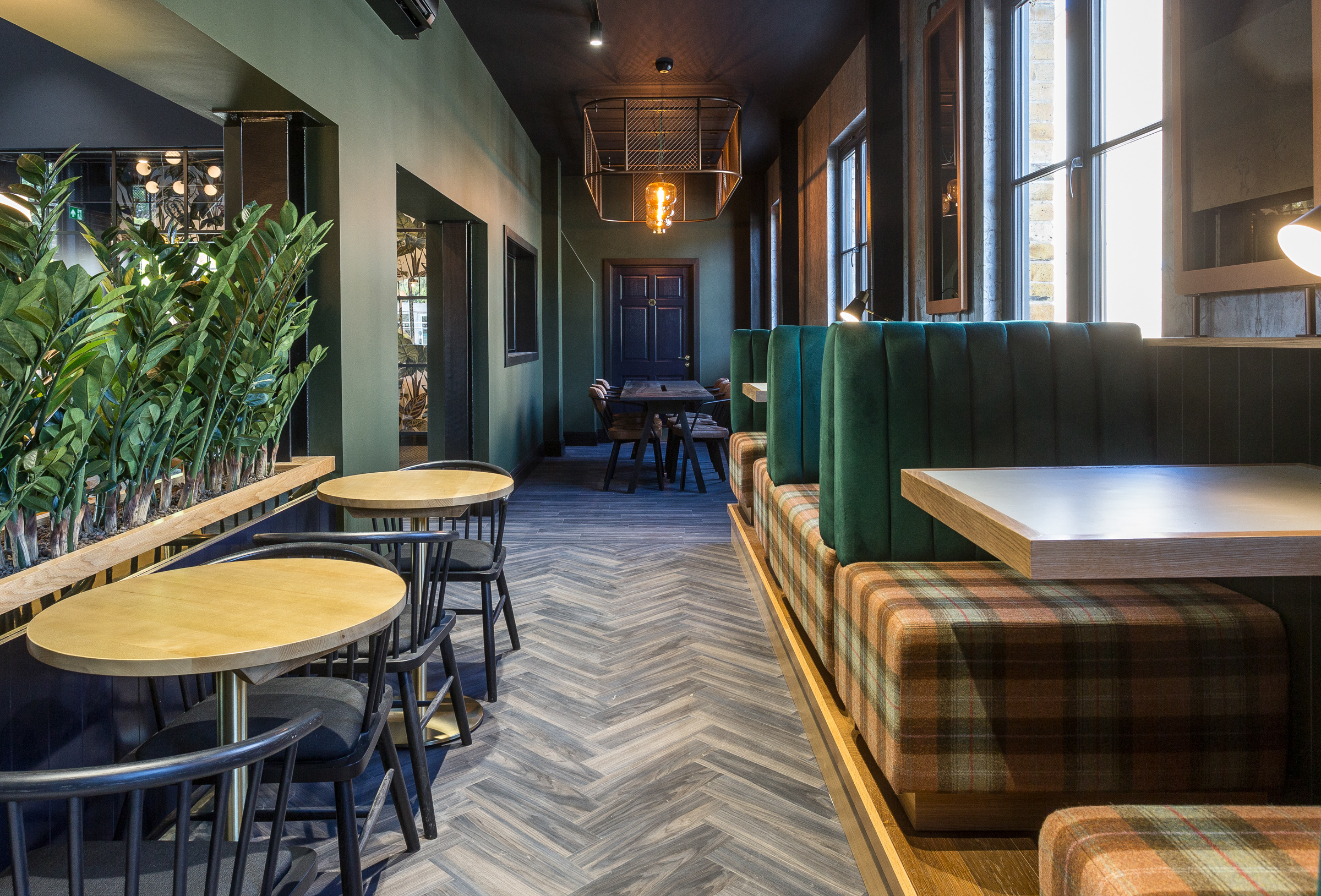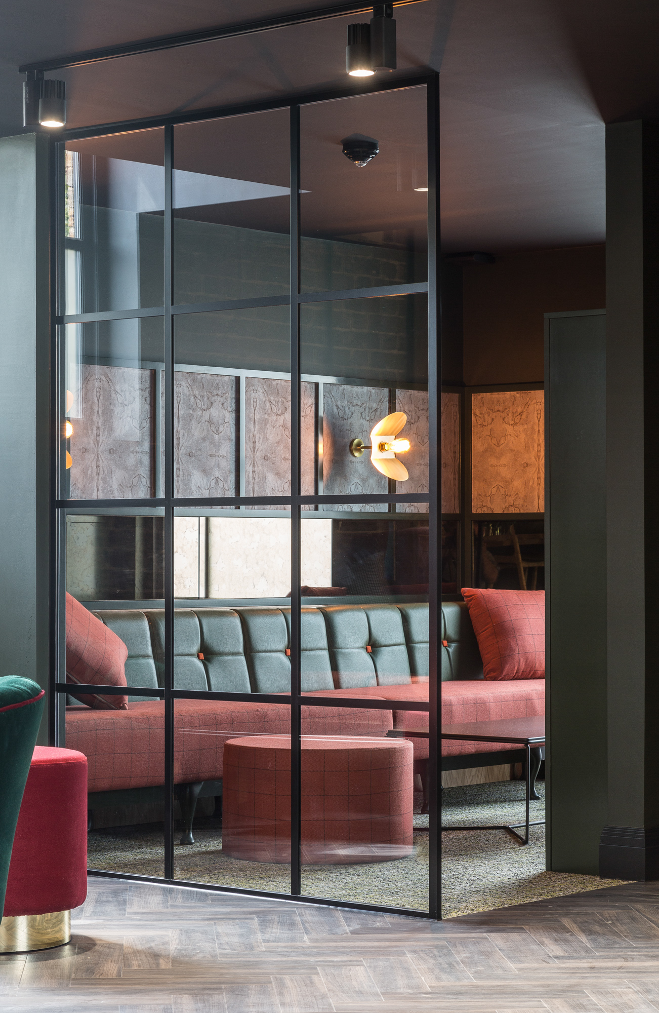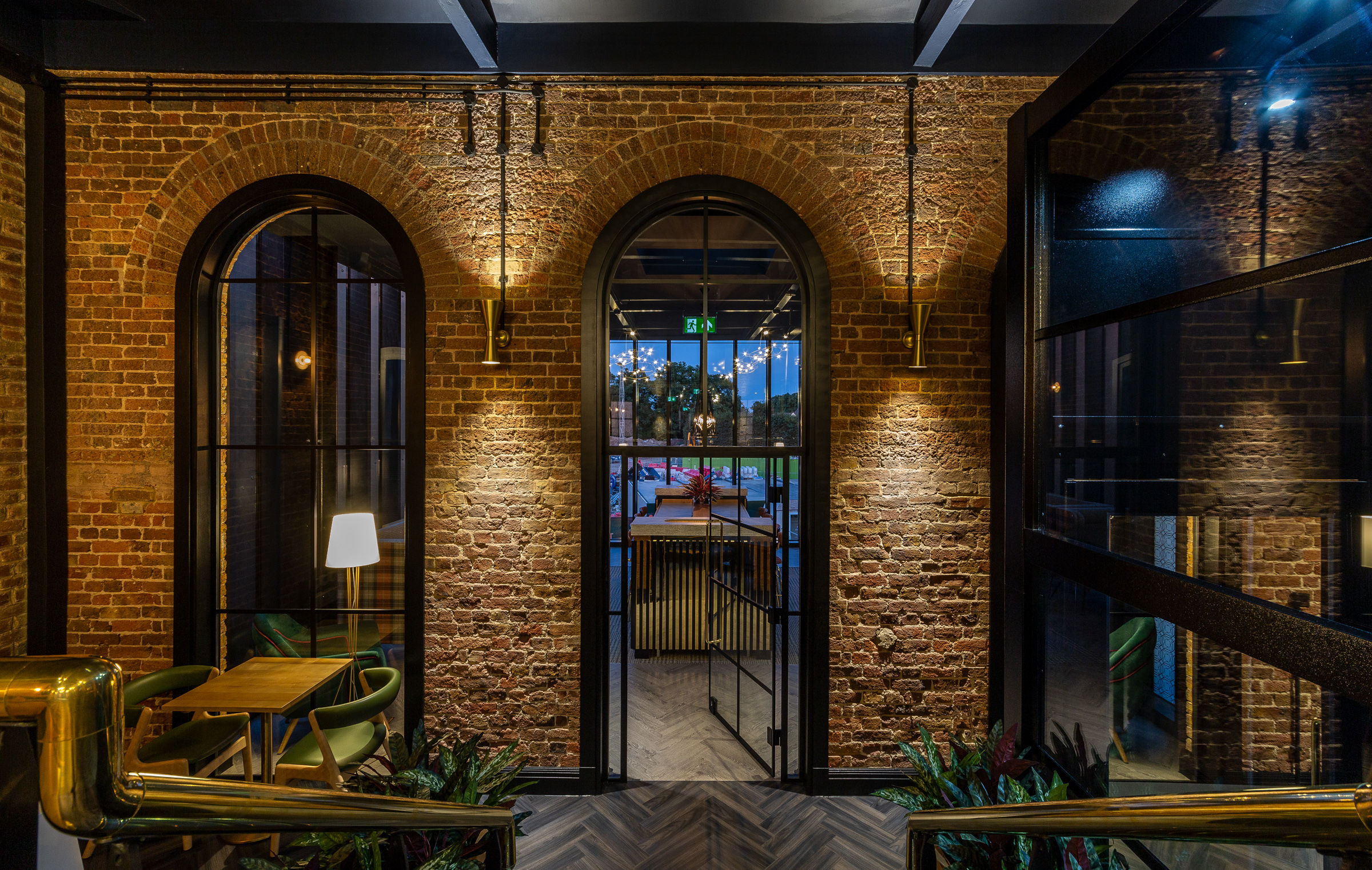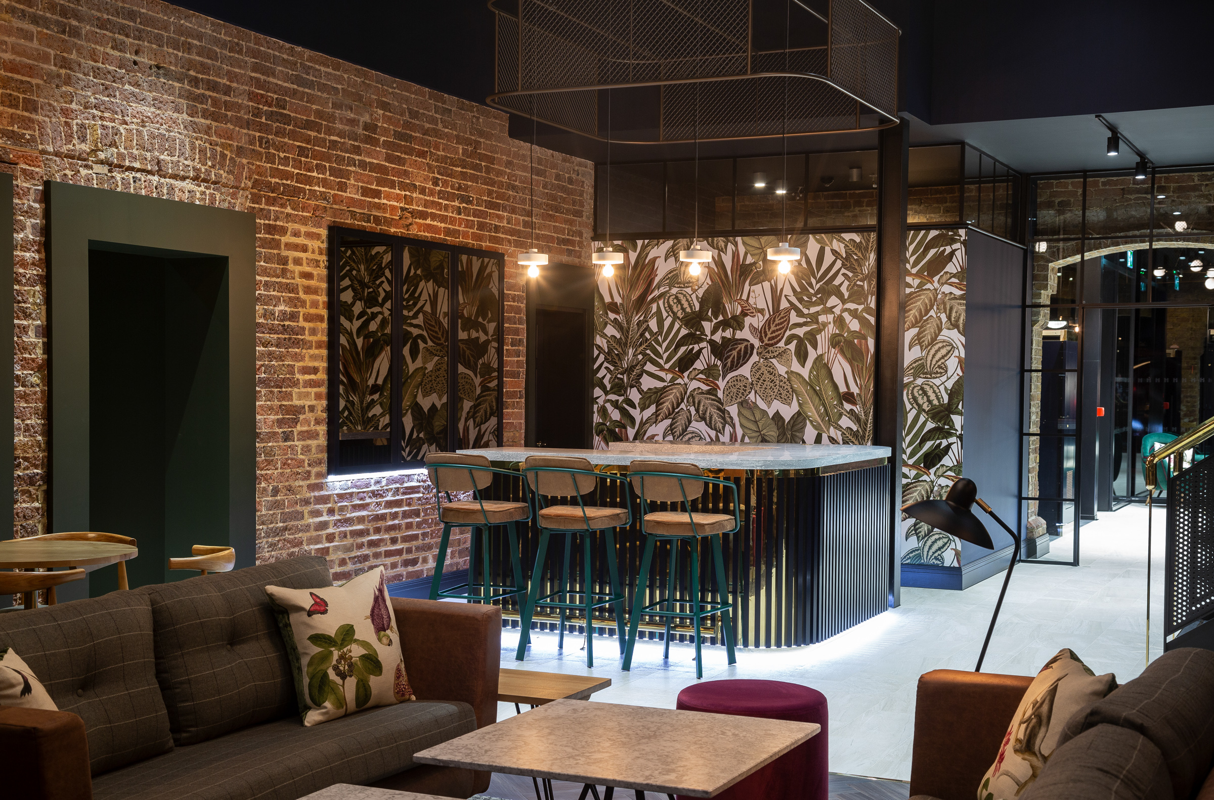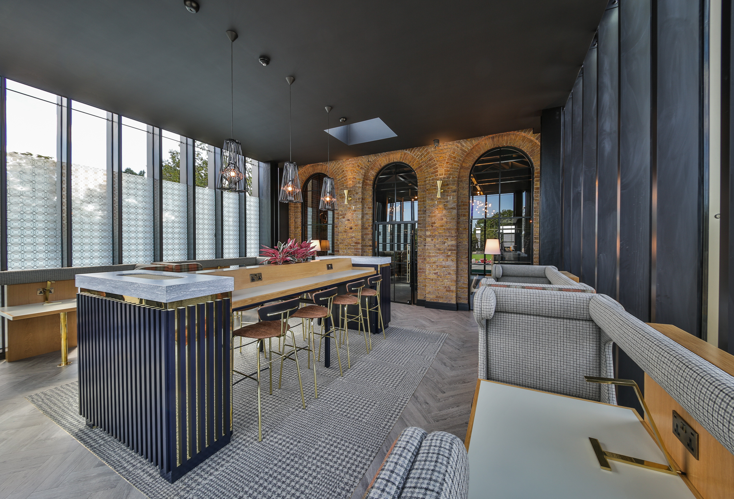 The interior design then focusses on bringing this outside in via natural references to create a rich, textured and high-quality feel, including marble-effect solid surfacing and brass detailing. All the original brickwork has been retained where possible with minimal restoration. Interior walls were stripped of plaster to reveal their beautiful hidden brick texture. The external works to the existing fabric were also purposely minimal, retaining age and character. Replacement elements, such as windows, were all designed sensitively to replicate the original history of the building. Internally, upholstery fabrics include textiles that nod to British rural tradition, such as checks and tweeds, whilst colours span a whole nature-inspired autumn-to-winter palette, and feature greys, browns, rusts and moss greens, with bursts of berry brights.