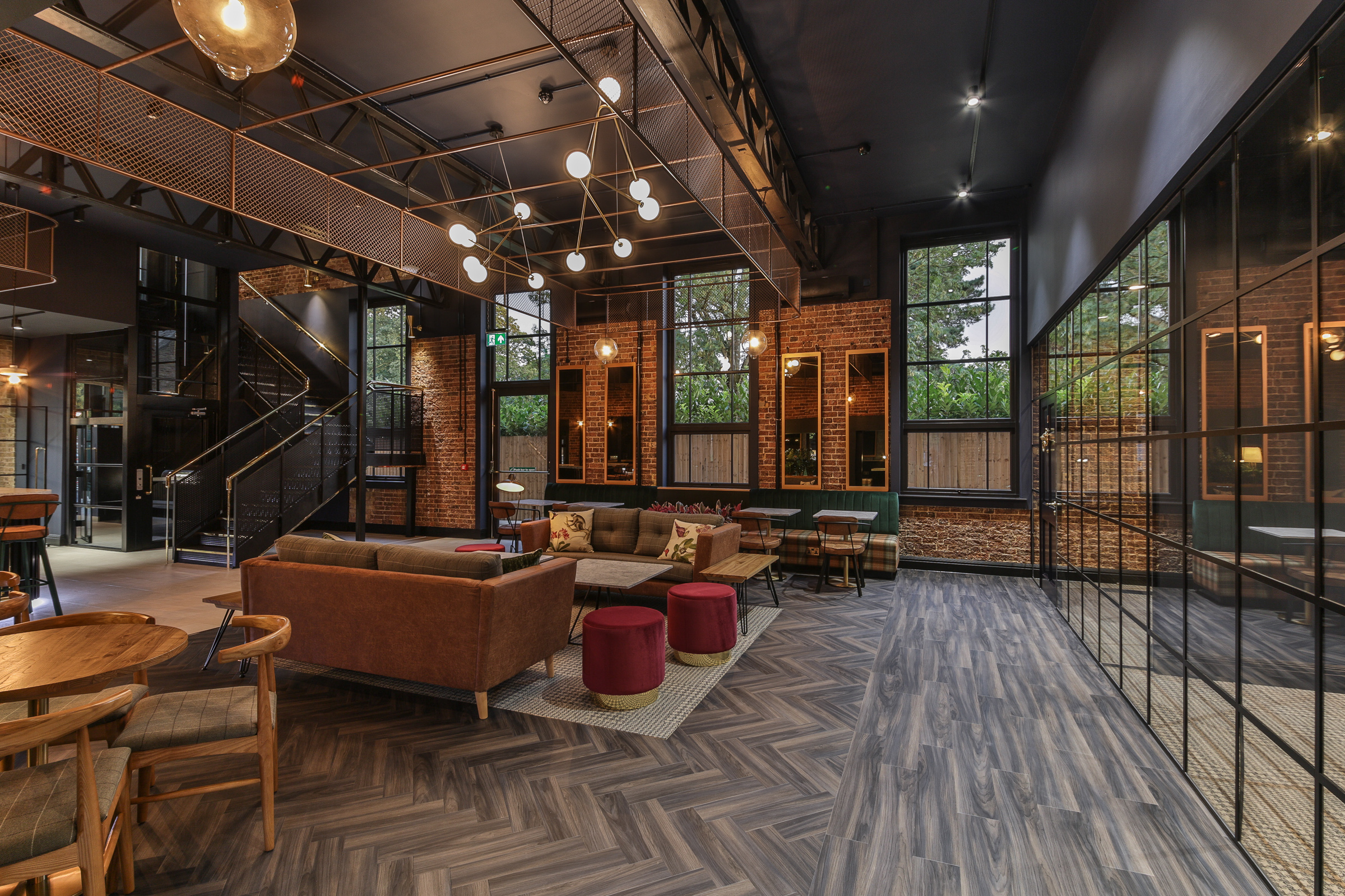Opening its doors in September 2018, 74 imagined ‘Hox Haus’ from a derelict Grade II-listed, two-storey, Victorian brick building set in a semi-rural location, just outside Egham. The repurposed Victorian gymnasium has been brought back to life as the Gatehouse for the wider ‘Hox Park’ student campus, serving as a vibrant social and hospitality amenity space.