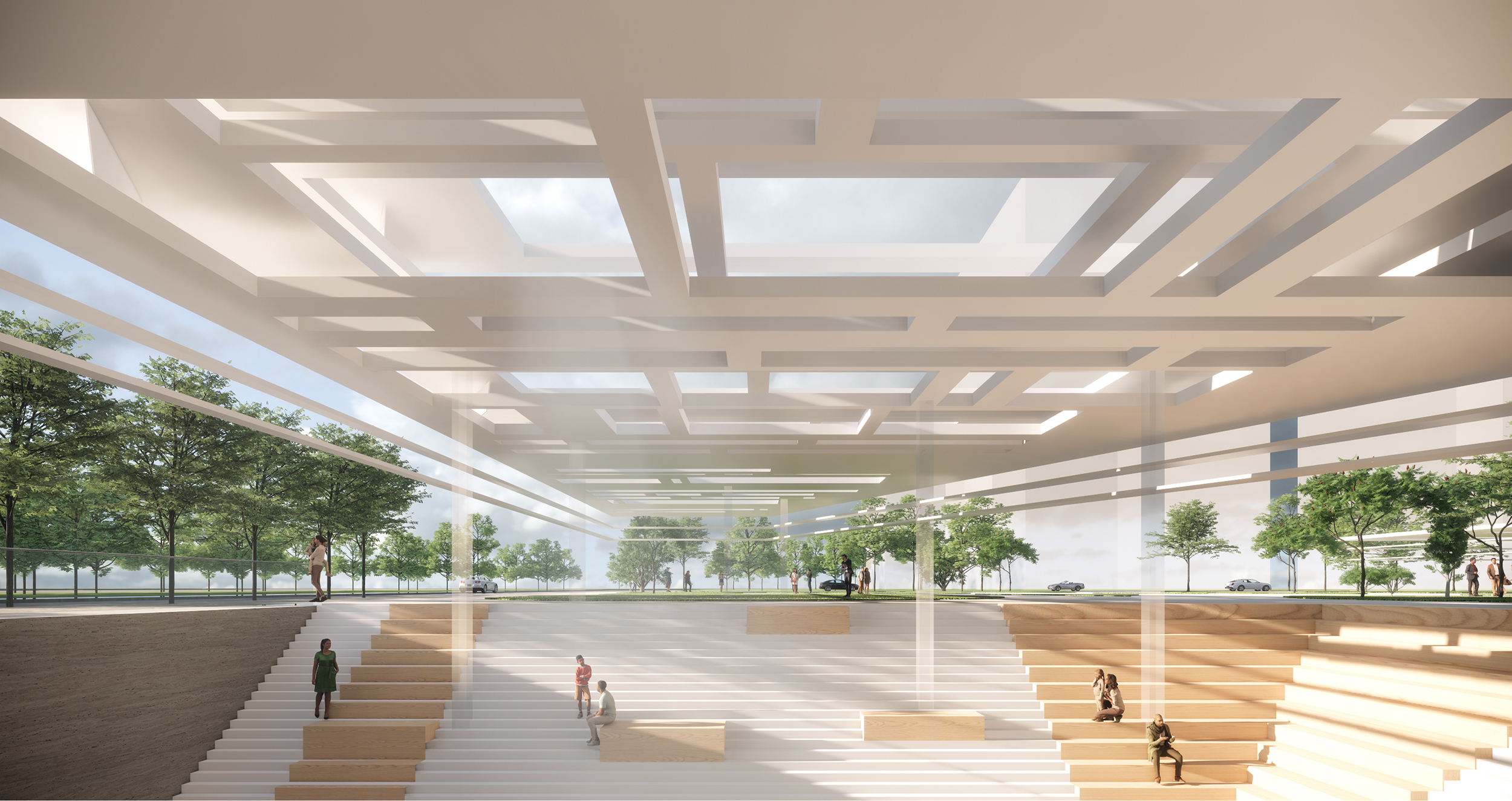 2. The commercial street is located in a sunken plaza, which can not only be entered from the outside to increase the possibility of commercial survival, but also can be accessed from the inside of the museum, becoming an integral part of the architecture system. In addition, the connection between commercial street and the subway is a powerful alliance. From a distance, the commercial street will not have an impact on the facade; yet from a close perspective, it can form a sightline with the interior of the building and the commercial street.