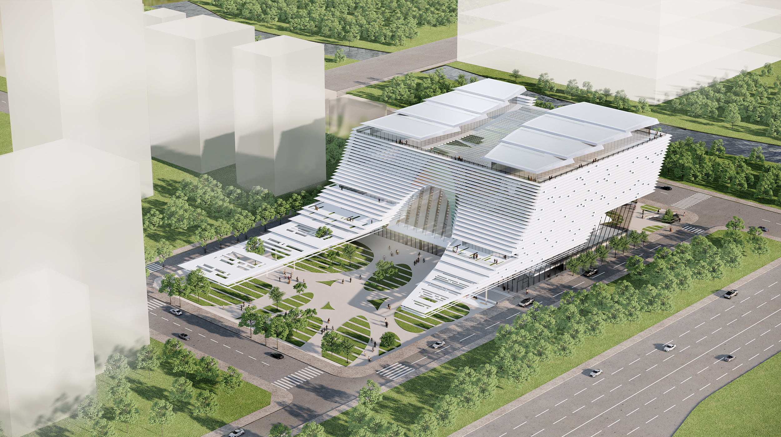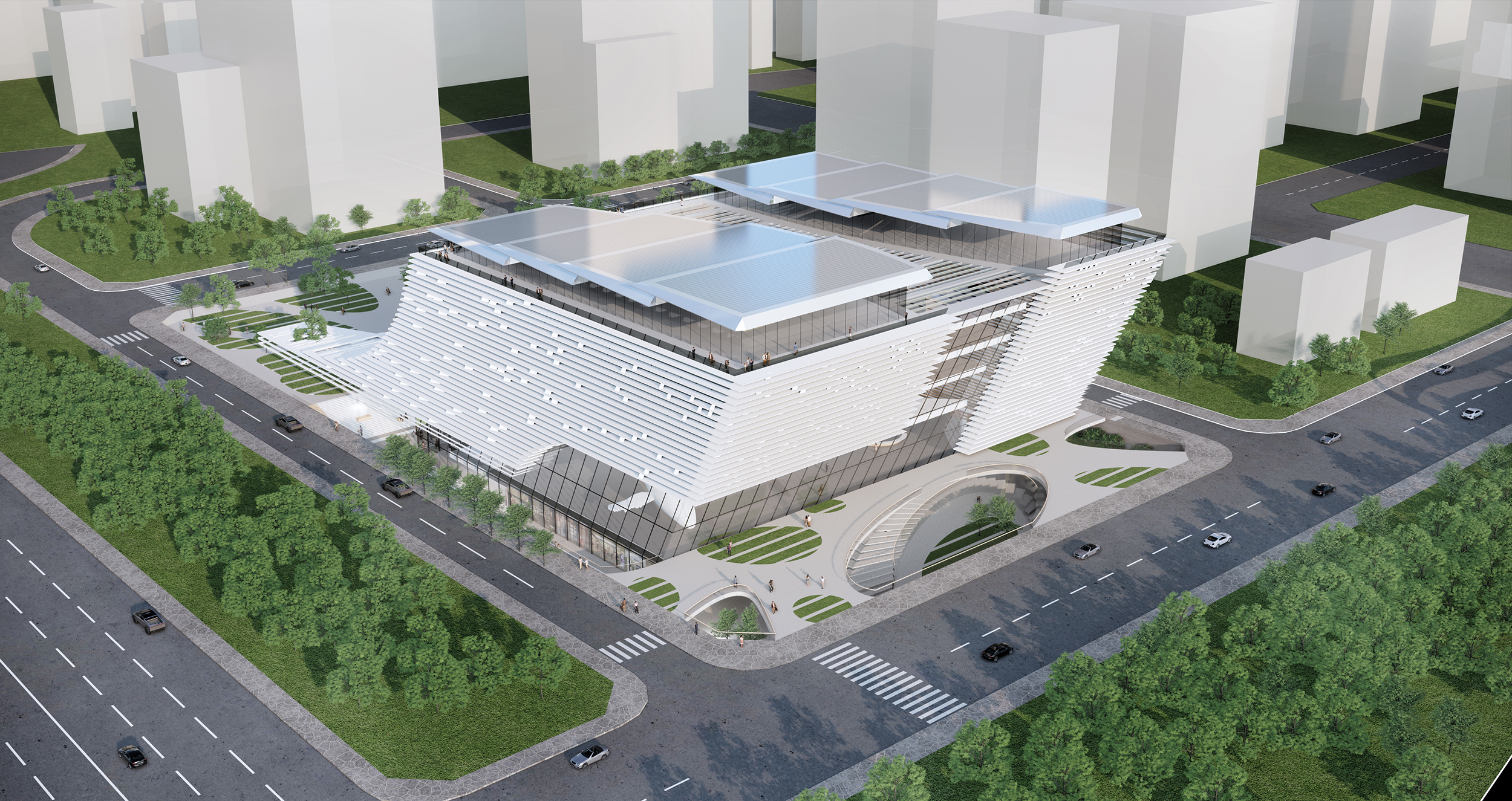 The Finance Culture Centre will be built in Futian District, a special economic zone in China, the core area of financial center in Shenzhen. The location is at the middle of Xiangmi Lake area, north of Shennan Avenue and west of Ecological Corridor Park, which is alongside with the Shenzhen Reform and Opening-up Exhibition Hall and the International Performing Arts Center, composing a public cultural building complex.