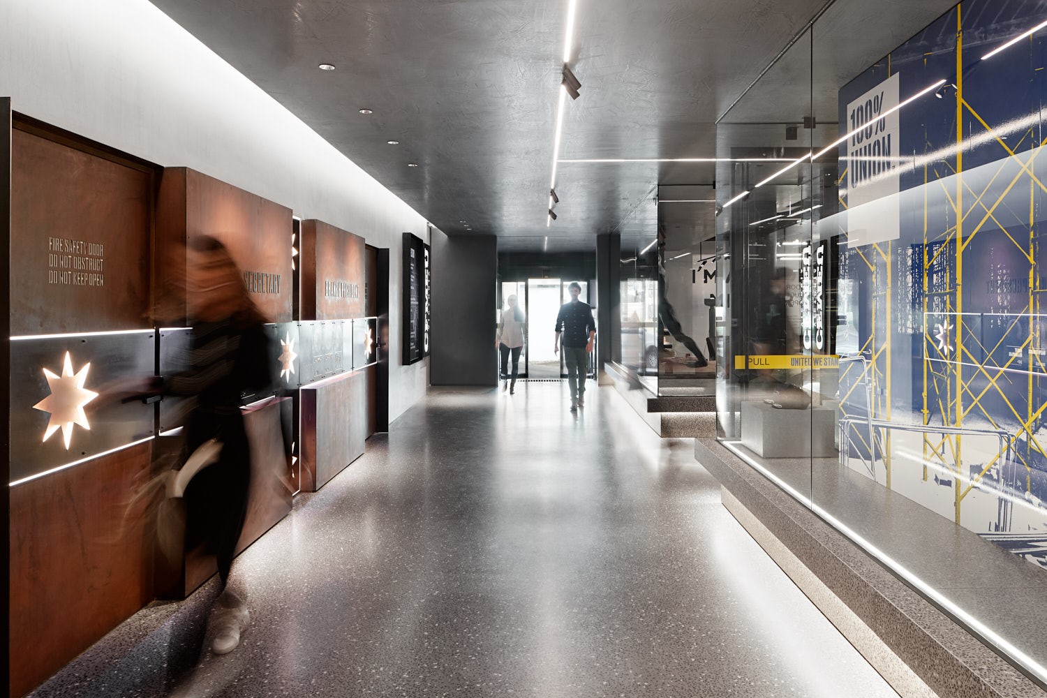 The project brief was to create spaces that members could connect with, feel proud of and that celebrated the unions proud history. The Lighting design in this space complements the interior architecture, enhancing the construction and industrial materials selected by spaceOS. Aimed at being appealing to both visitors and members alike, the lighting was designed to be practical at task areas and used to lead and guide new visitors through the various spaces.