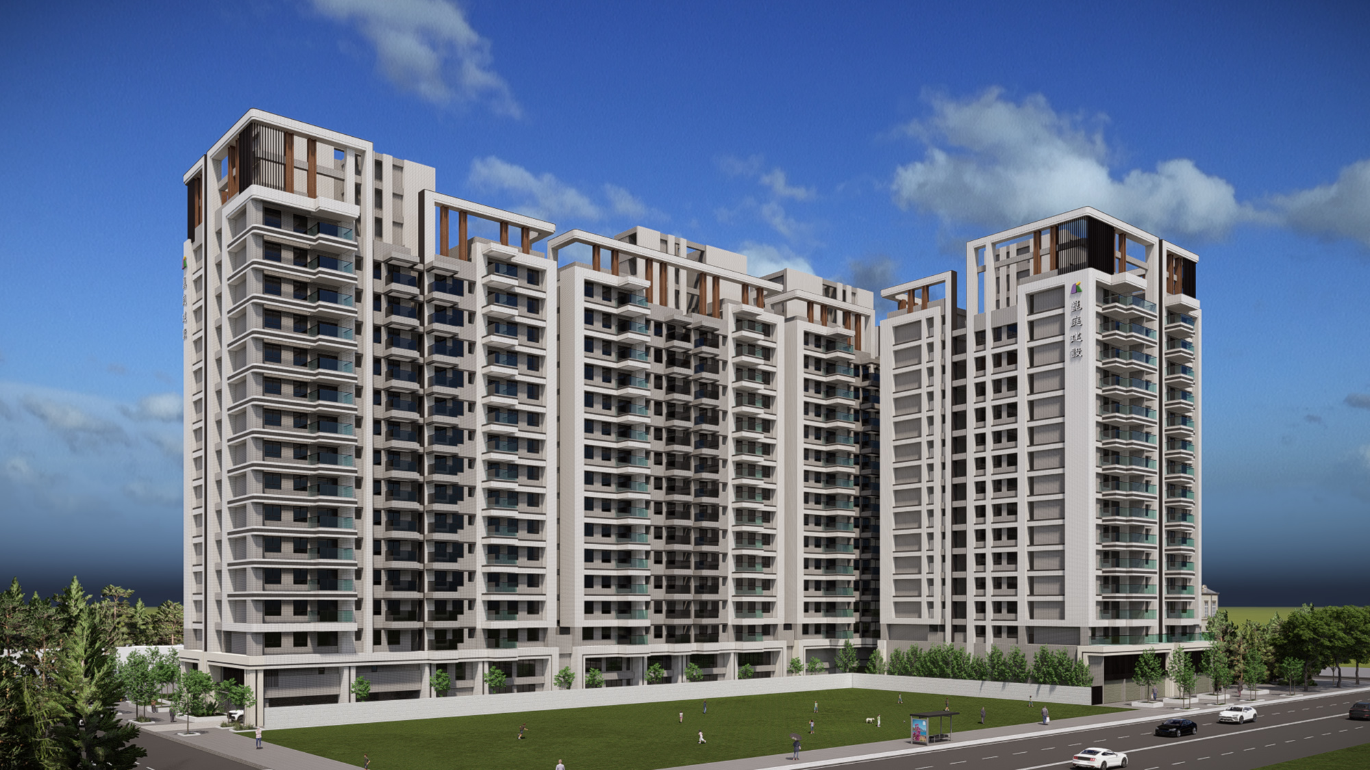 Turning the local laws to good account, balconies up to 3 meters deep are installed in each apartment that faces outward. Greenery are planted thoroughly so that the green can be seen even from outside. This also visually soften the appearance of the building, bringing down the oppressiveness to the environment. Bigger and deeper balconies bring the residences wider space to relax, they also provide better shading from the sun.