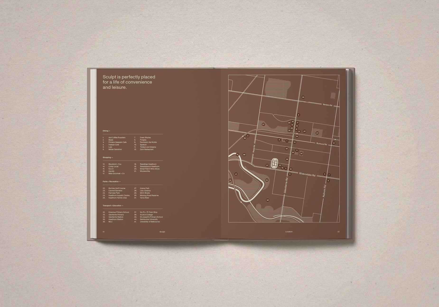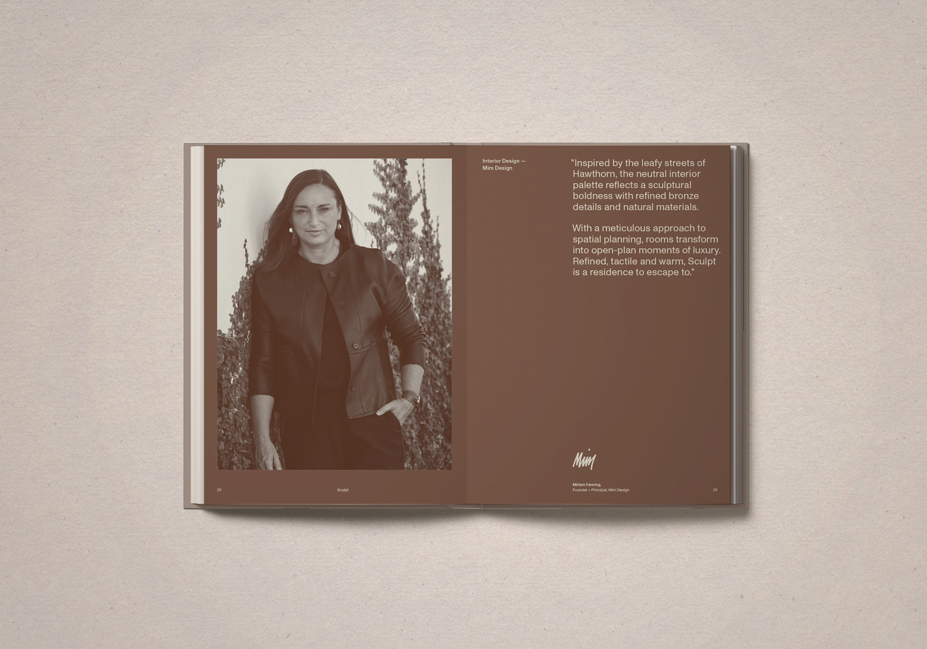 Our brief was to create an elegant brand and sophisticated collateral, celebrating the project's exceptionally tailored and highly-curated design and, in doing so, positioning the project as individual homes that establish an elevated way of life.