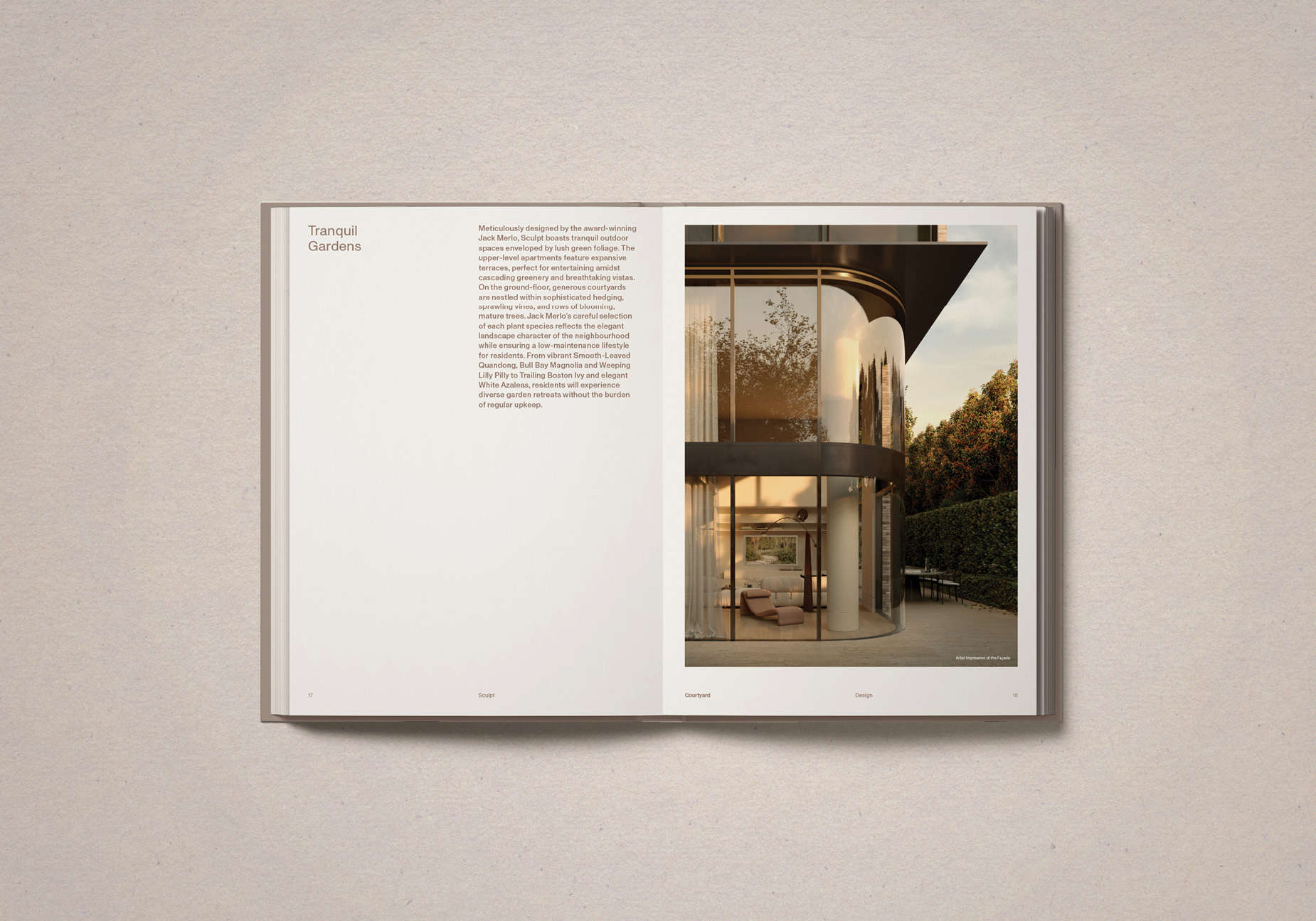 Our brief was to create an elegant brand and sophisticated collateral, celebrating the project's exceptionally tailored and highly-curated design and, in doing so, positioning the project as individual homes that establish an elevated way of life.