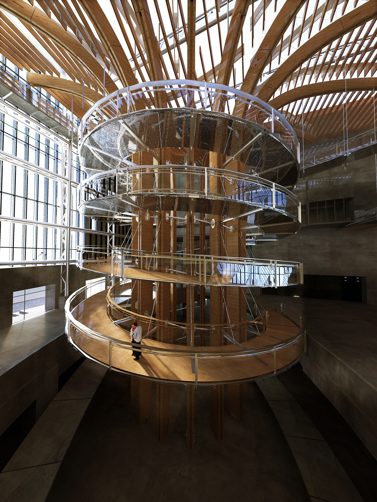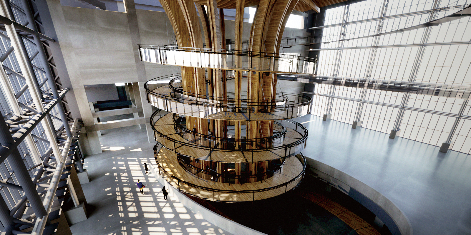 Babbuza Dreamfactory has its roots in the 2014 Dreamworks Green Factory architecture competition, which was funded by fifty-year-old Taiwanese storage solutions manufacturer Shuter Enterprise. Shuter was seeking concepts that balanced the needs of plastics and steel manufacturing with green-focused building solutions. They wanted to inject an aspect of the humanities into the Taiwanese manufacturing sector. The winning proposal by Australian firm Williamson Architects conceived “the factory as a tremendous tree,” the competition jury noted. “They made the tree the main structure of the factory, which directly connects the design concept to the environment.” Brad Williamson, the studio’s founder, notes that the Williamson Architect team enjoys the freedom and speed of architectural competitions. “The Babbuza Dreamfactory was a particularly good competition brief,” he says. “It offered an irresistible paradox–green vs. industrial–and huge potential for experimentation.” As construction and engineering teams realised the concept, they stayed true to this renegade nature. The banyan tree that was so central to the firm’s vision of sustainability now stands proud in Babbuza’s eight-floor foyer. This “Tree of Life” is itself a feat of engineering creativity: made entirely of spruce, it stands 30.8 meters high and is entwined with a vine-like skywalk over 350 meters long. Creativity extends to the functions of Babbuza Dreamfactory, too. The factory will soon open its doors to the public, who can visit Taiwan’s first and only Austronesian Culture Hall, restaurants serving local fare, shops managed by Taiwanese craftspeople and MIT (Made in Taiwan) brands, and a youth entrepreneur hub.