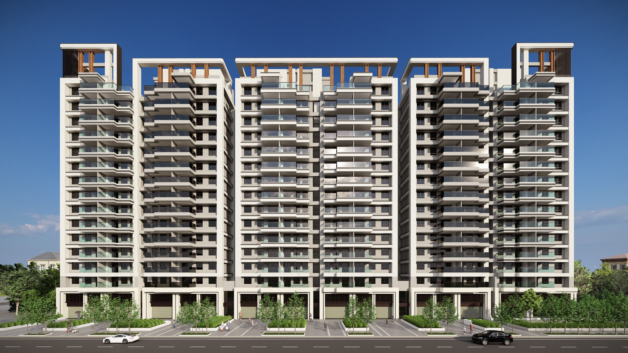 Turning the local laws to good account, balconies up to 3 meters deep are installed in each apartment that faces outward. Greenery are planted thoroughly so that the green can be seen even from outside. This also visually soften the appearance of the building, bringing down the oppressiveness to the environment. Bigger and deeper balconies bring the residences wider space to relax, they also provide better shading from the sun.