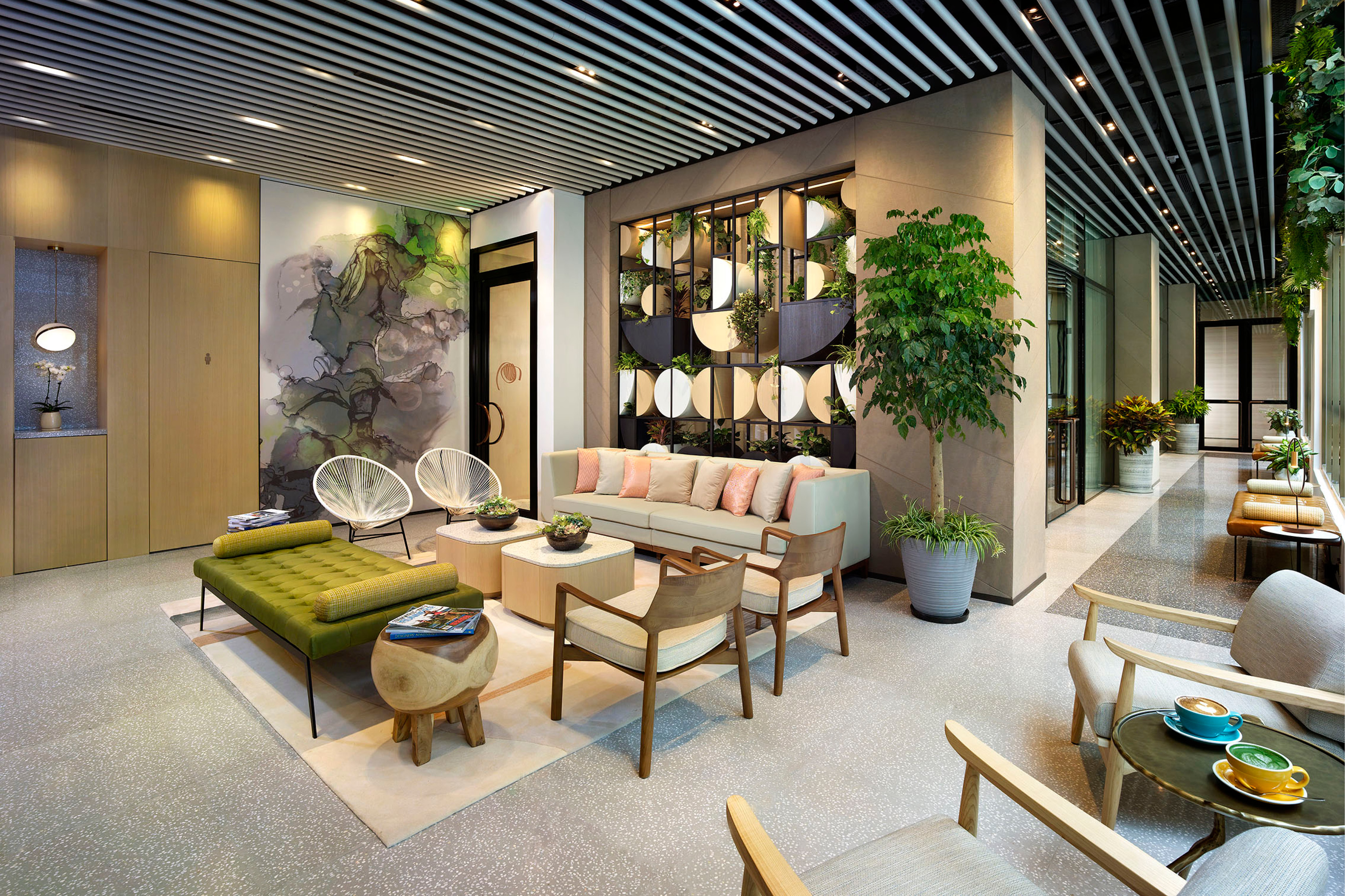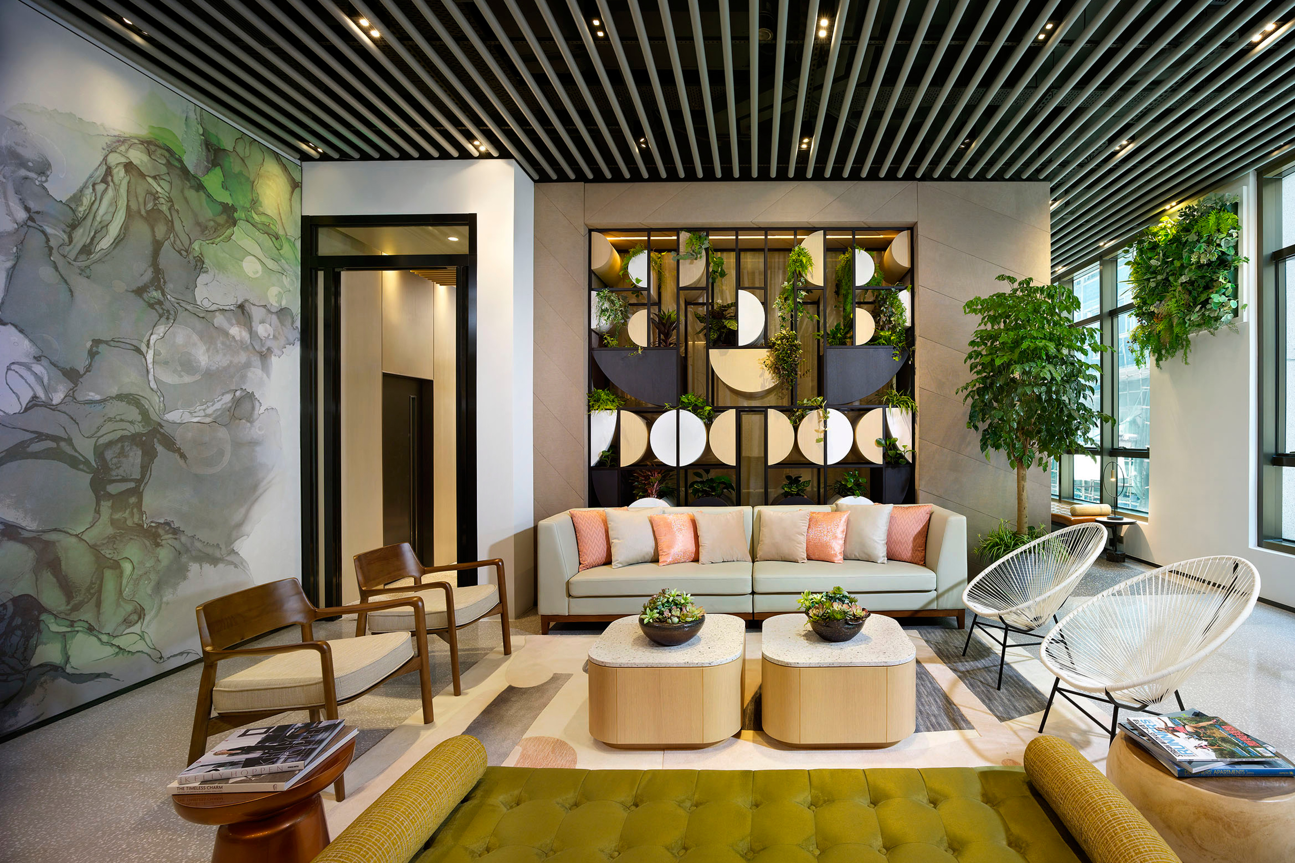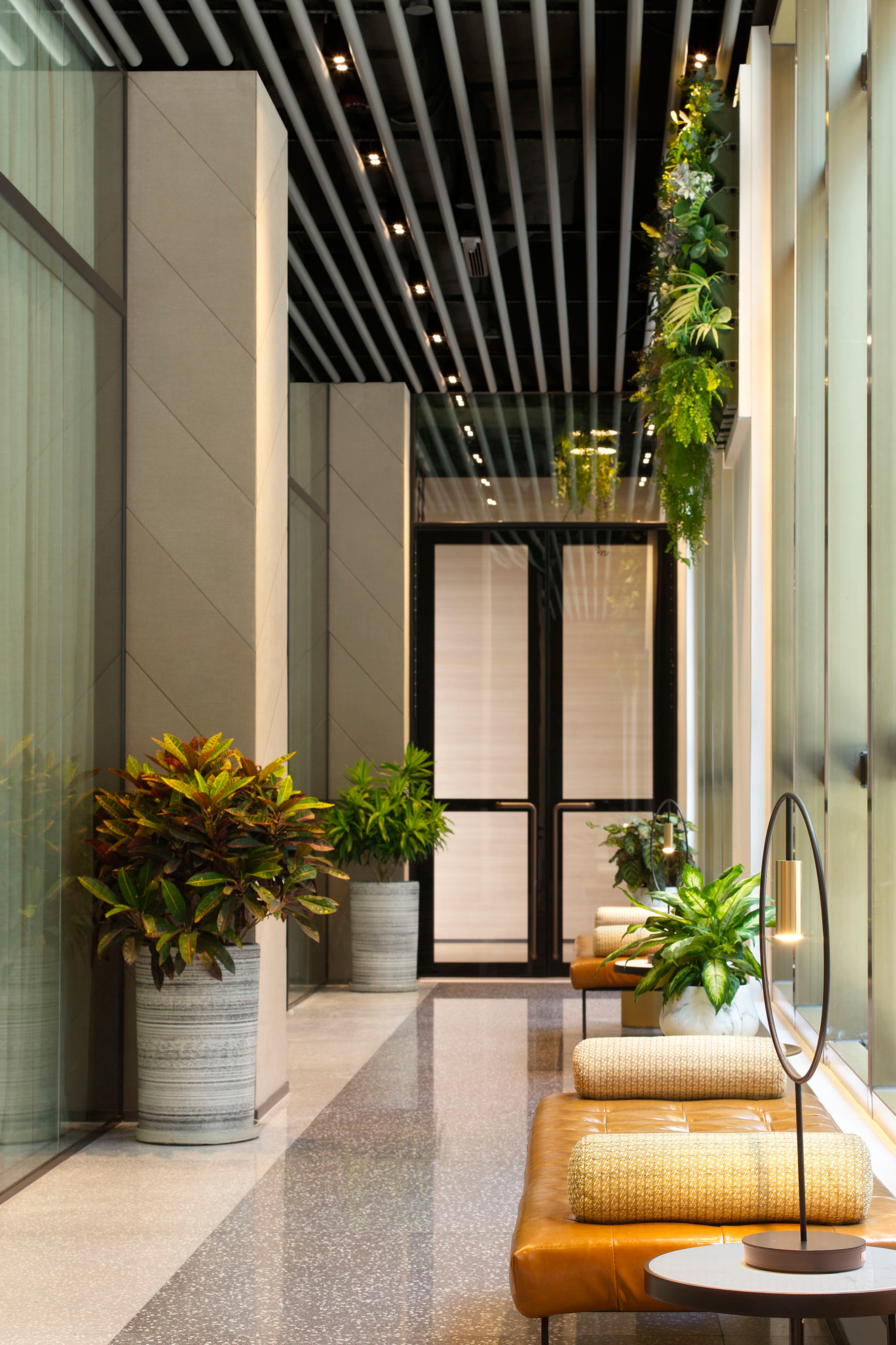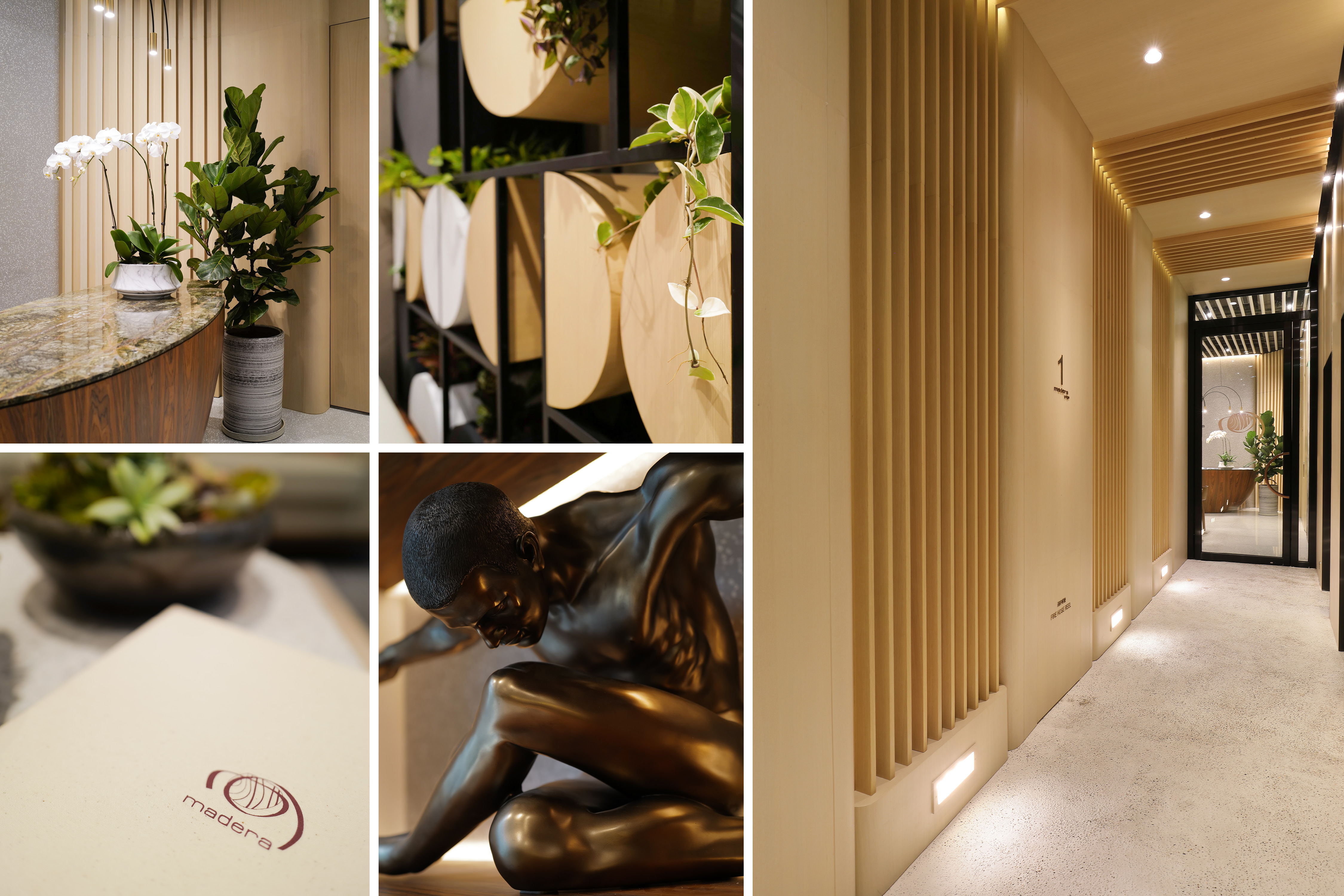 Nestled in a prime location in Jordon of Kowloon, Madera Yoga is a new addition to the Madera Complex with chic hotel, serviced apartment, F&B outlets and etc. It creates an intimate journey that starts from yoga and extends into surroundings, for the full restoration of mind, body, and soul. The harmonious and natural design of Madera Yoga is set to deliver an oasis of tranquility and serenity to the guests to find their inner state of peace once again. The interior is based on human centred and green infused design, extract colours from nature, from flourishing rainforest to beautiful and peaceful wilderness. The common area is more of a natural stone, textured wood with rainforest green and peachy orange, whilst the studios are more of a muted lime with butterum timber, dark metal and blossom greeneries. It is not only a space for exercise but also a space for feeling the heart of the peace. The 4,000 sq.ft yoga centre lavishly appointed classrooms ranging from 245 sq. ft. to 1,295sq. ft., each boasts 4.5m high ceiling and view of the city. World-class equipment are available for all kinds of yoga.