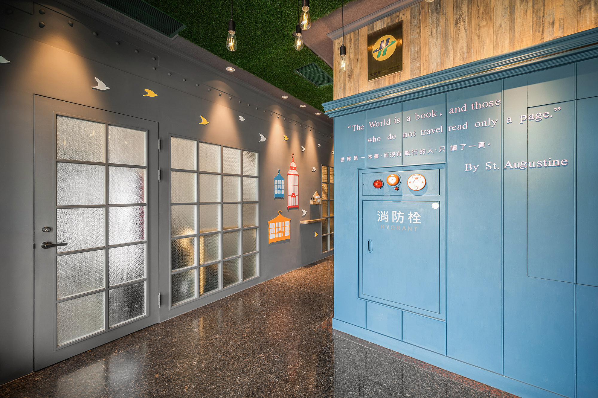 Saint Augustine, a theologian and philosopher, once said, “The world is a book, and those who do not travel read only one page.” This client's favorite saying is planned as the wall decoration at the hotel’s entrance to share the nature and amazingness of traveling with the visitors. For this project, the designer has set the migratory bird as the theme of the space, symbolizing the return of the tired birds to their nests, hoping that travelers can experience a heart-warming accommodation that feels like home.