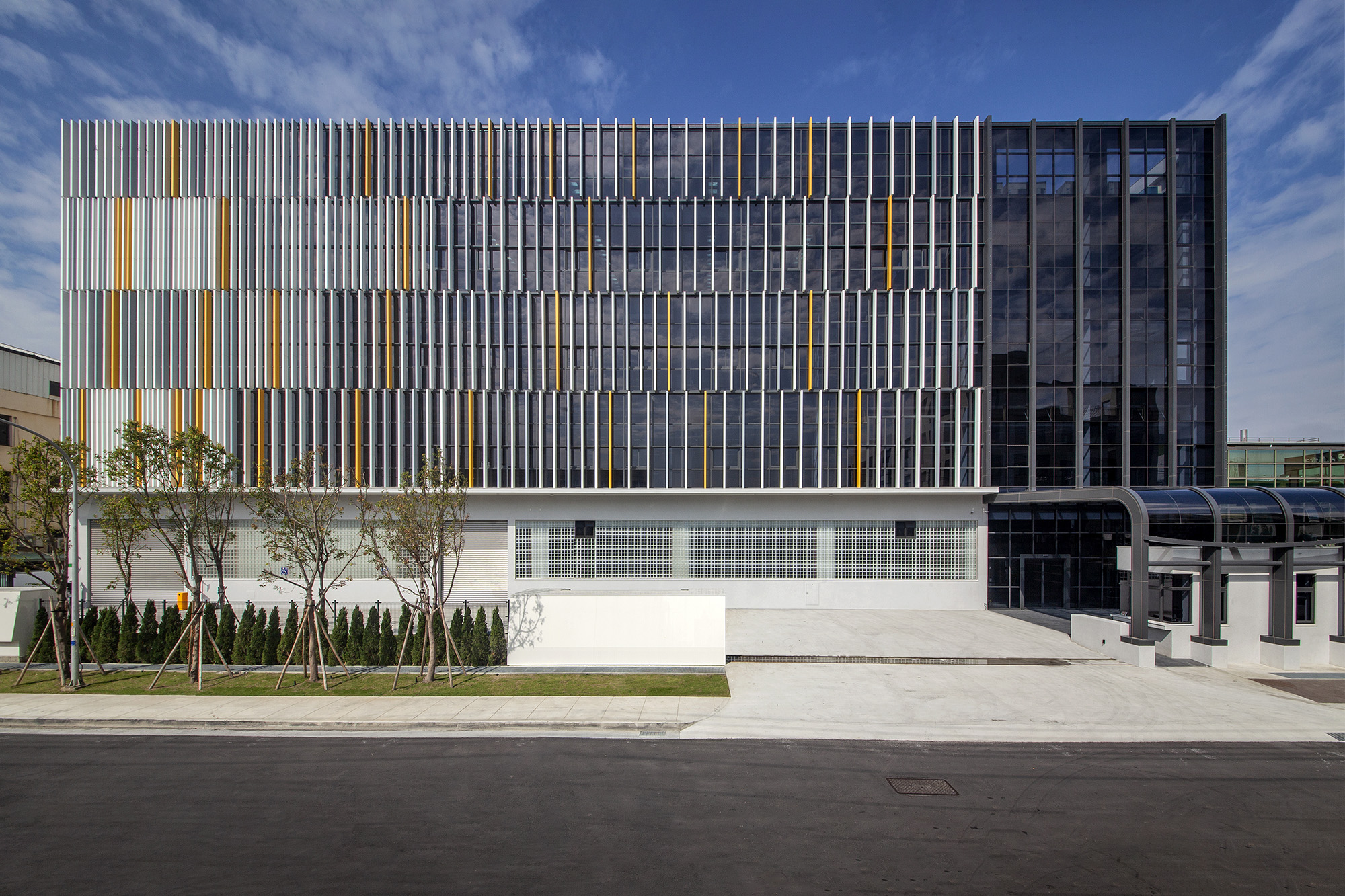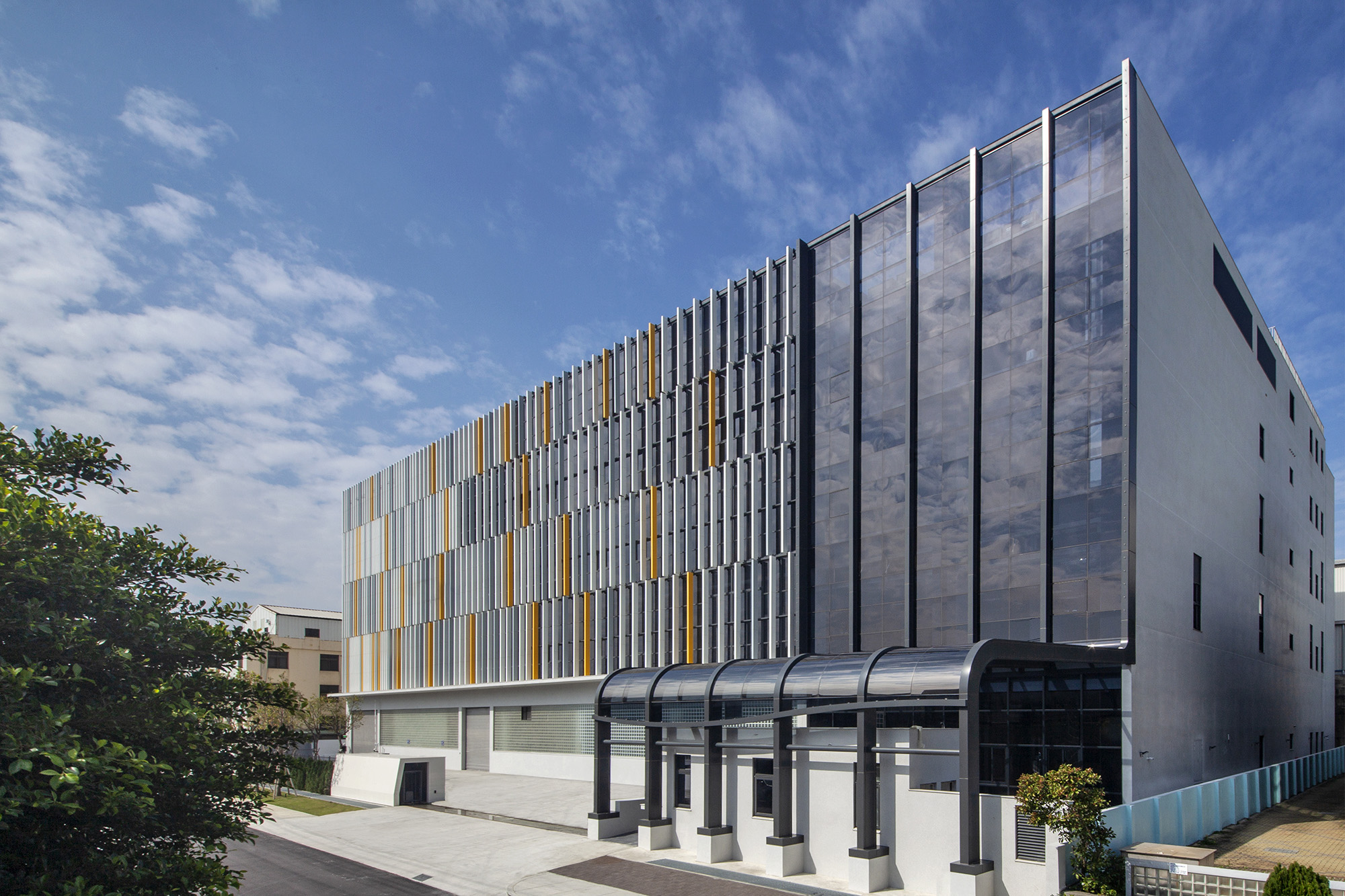 Given the west-east direction of the building, the design team has taken advantage of this characteristic to set up a large glass curtain on the front façade so that a large amount of natural light can be drawn into the room to satisfy the users' demand for light sources. It reduces the use of electric lights, prolongs their service life, lowers electricity consumption, and achieves the idea of energy saving and carbon reduction. The vertical grilles and other window openings are used to effectively block the heat of direct sunlight and indirectly reduce air conditioning, which is earth friendly. On the first floor, glass tiles are used on the walls, giving the space good lighting conditions and providing heat insulation, creating a bright and comfortable room. The curtain and the entrance rain shelter will collect rainwater for water reuse, incorporating the traditional Chinese Kanmu "wealth and water recycling" imagery. LED energy-saving lights are used for lighting throughout the plant, and water-saving devices are installed. The production process in the factory is all high-technology-operated, with automatic storage and aerial and vertical conveyance as the integration of the process, which provides intelligent management, saves energy and produces lessened carbon emissions.