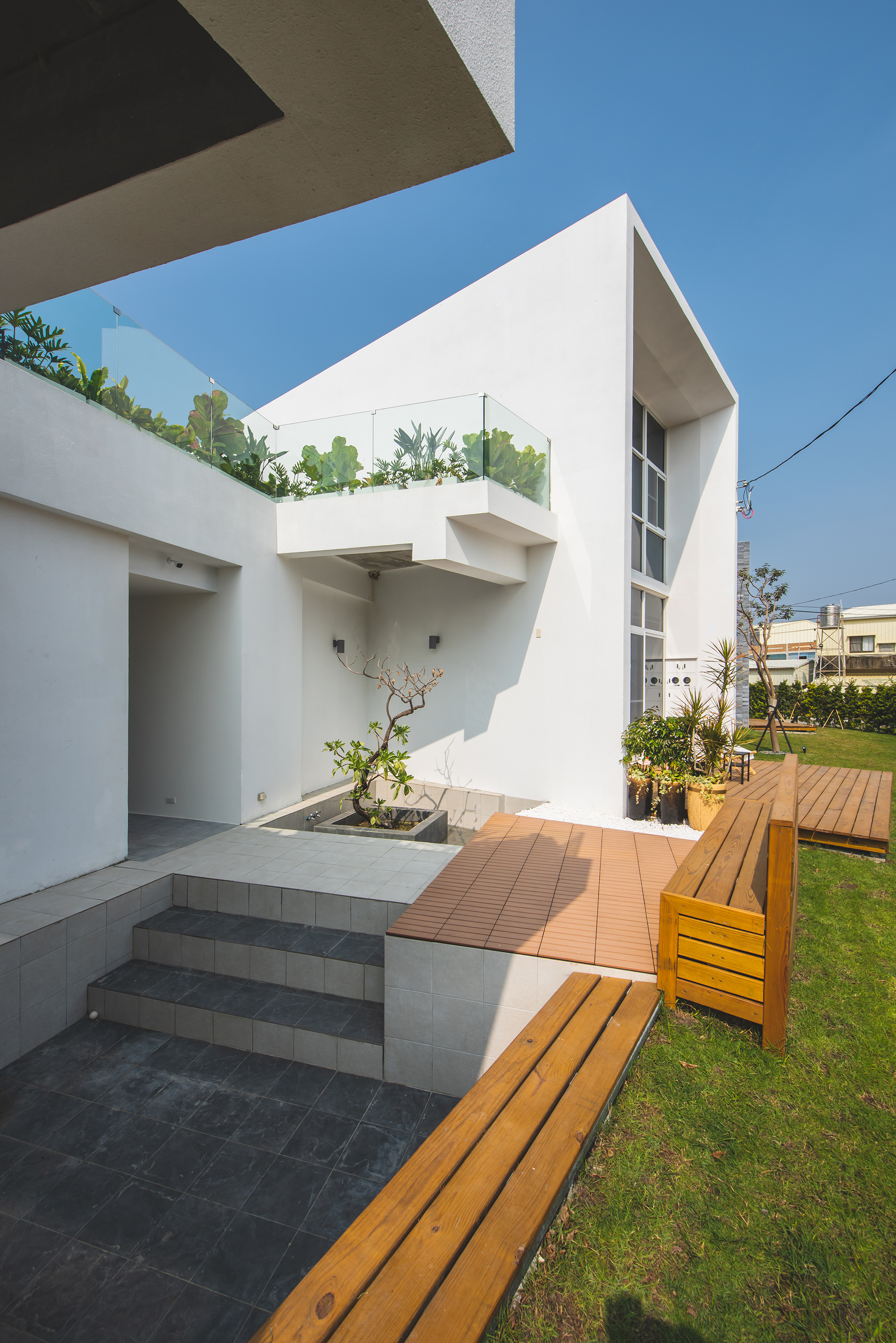 Located in a small community at the seaside, the project is deeply inspired by the richness of the local culture and nature. Viewing from far away, one can see the guesthouse integrated immersively with the surroundings as if it is a part of an organic ecological system. The overall color palette applied on the buildings appears to have a sense of warmth and luminosity. With white and gray, the designer manages to paint out the local identity through the design. Instead of saying that travelers gather together because of the buildings, it is better to say that being here allows them to connect to the environment. The design project is born naturally out of the idea. Entering this place, one can immediately forget about their worries, wandering freely within nature.