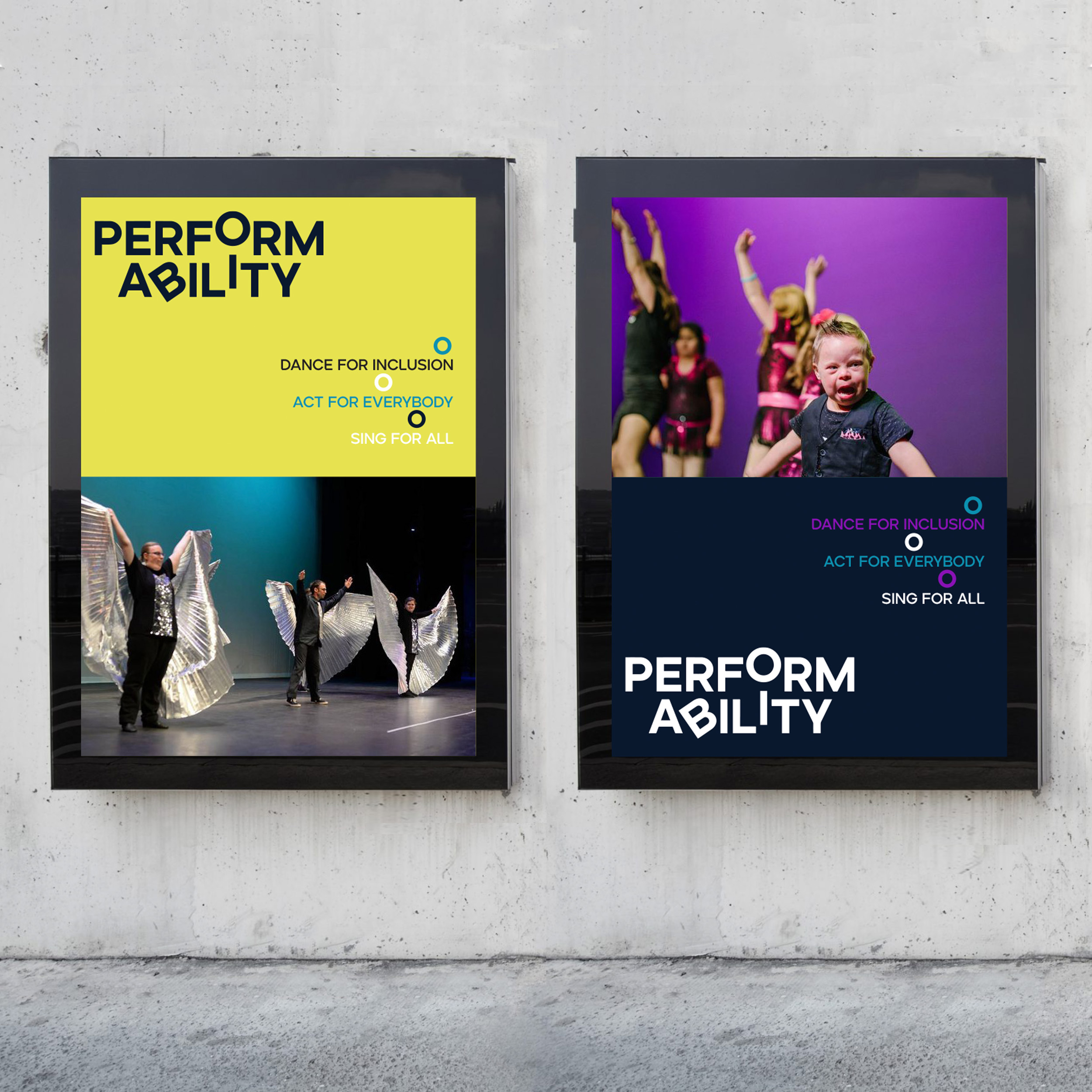 A rebrand for Perform-Ability; therapy-aligned performing arts programs for people of all abilities. This brand needed to represent inclusion and playfulness, to inspire and also speak to three different demographics; students, their parents and the instructors.